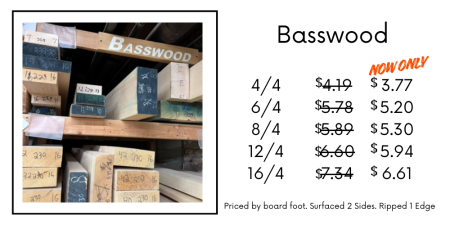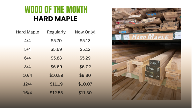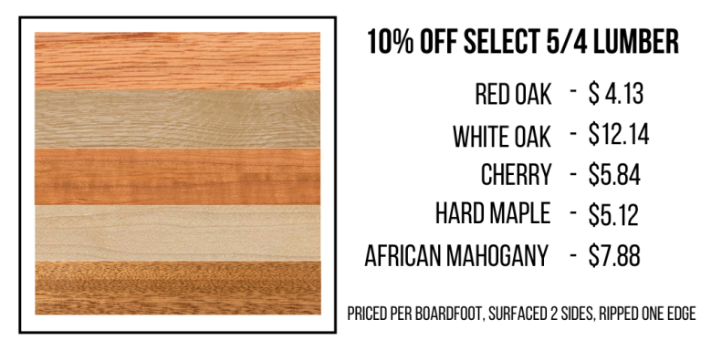 In celebration of President’s Day, our selection of 4/4 Cherry is on sale! Regular 4/4 Cherry is discounted to $3.99 bf with 8+” wide at $4.49.