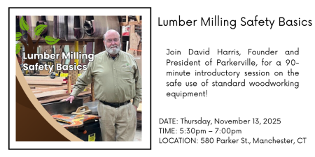 • Overview of key machines: 10” table saw, jointer, planer, chop saw, band saw, and drill press